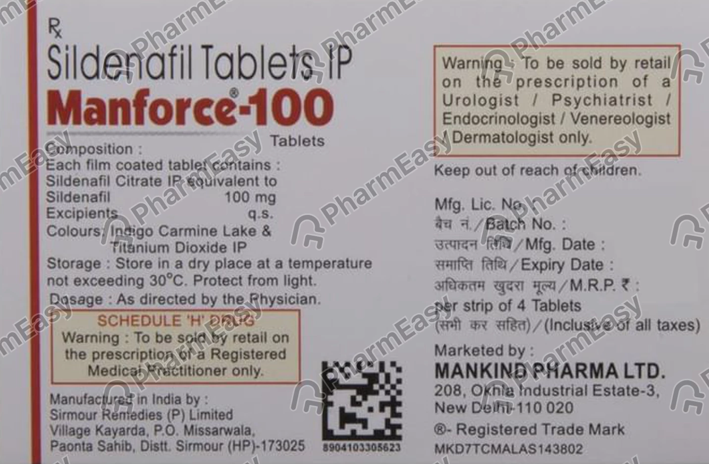 Using Manforce-100 Tablet should always be done under medical advice. It is recommended to take it only in the dose and timing suggested by your doctor. Do not exceed the recommended dosage. For best safety, avoid alcohol and do not take it with nitrate medicines or heart-related medicines without doctor approval.
